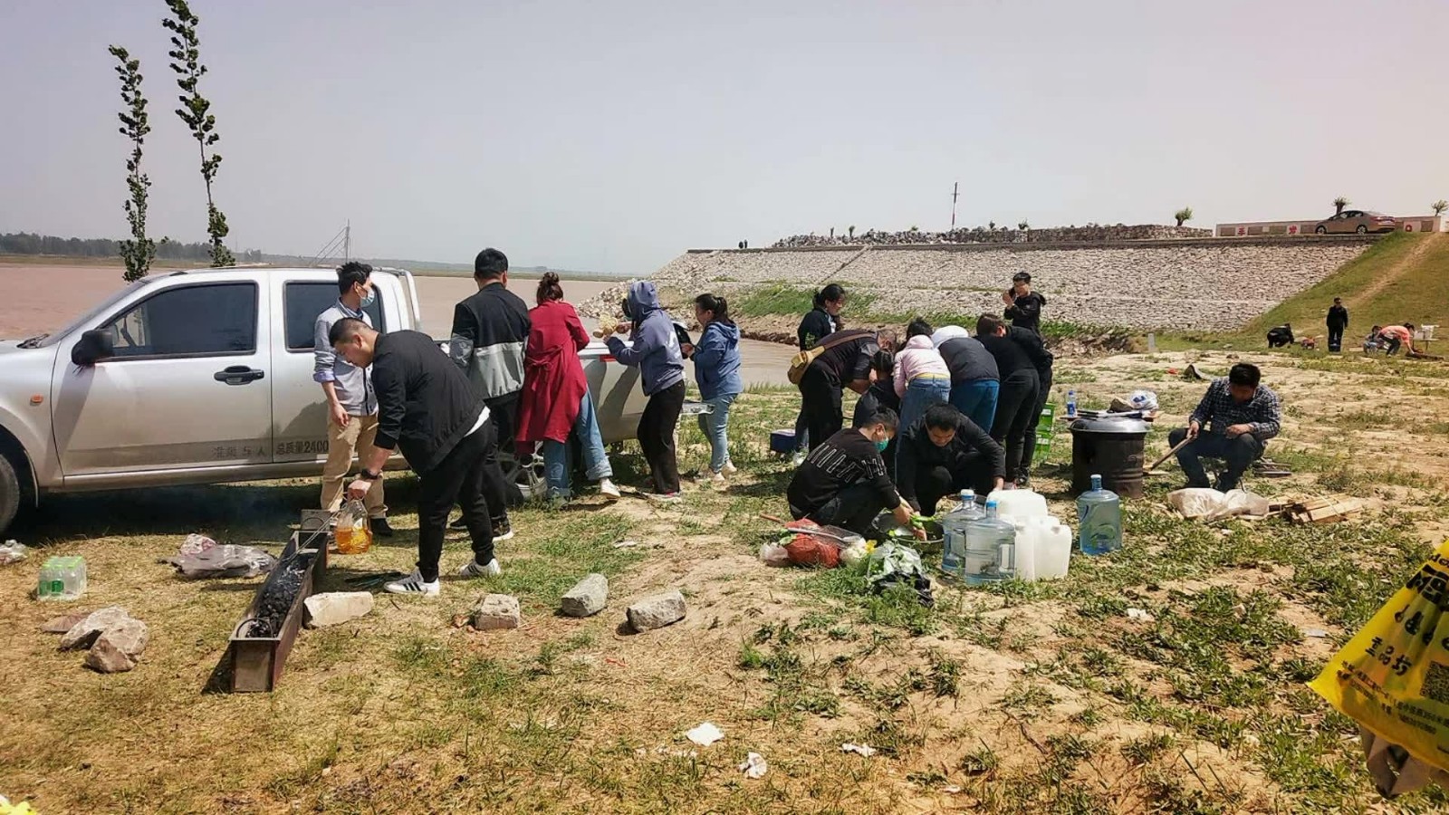 經(jīng)過(guò)近一個(gè)小時(shí)的車程,我們終于到達(dá)了目的地。黃河岸邊視野開闊,出行人員不多,在疫情當(dāng)下是一個(gè)安全、舒適的好去處。復(fù)工不復(fù)學(xué),父母?jìng)兤綍r(shí)忙于工作,孩子們?cè)诩疑暇W(wǎng)課,外出機(jī)會(huì)少,拓展活動(dòng)為孩子們的戶外撒歡提供了好機(jī)會(huì)。孩子們?cè)谝慌员M情歡笑,大人們忙著架鍋燉羊湯、架燒烤爐、串烤串,大人小孩都忙的不亦樂乎。